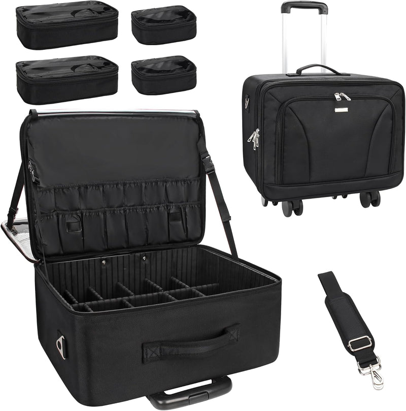Large Rolling Makeup Case,Professional Makeup Artist Bag with 4 Small Bag Makeup Case, Adjustable Dividers, Portable Travel Supply Station for Cosmetics Storage Organizer Trolley Suitcase Makeup Cart Professional Trolley Cosmetic...