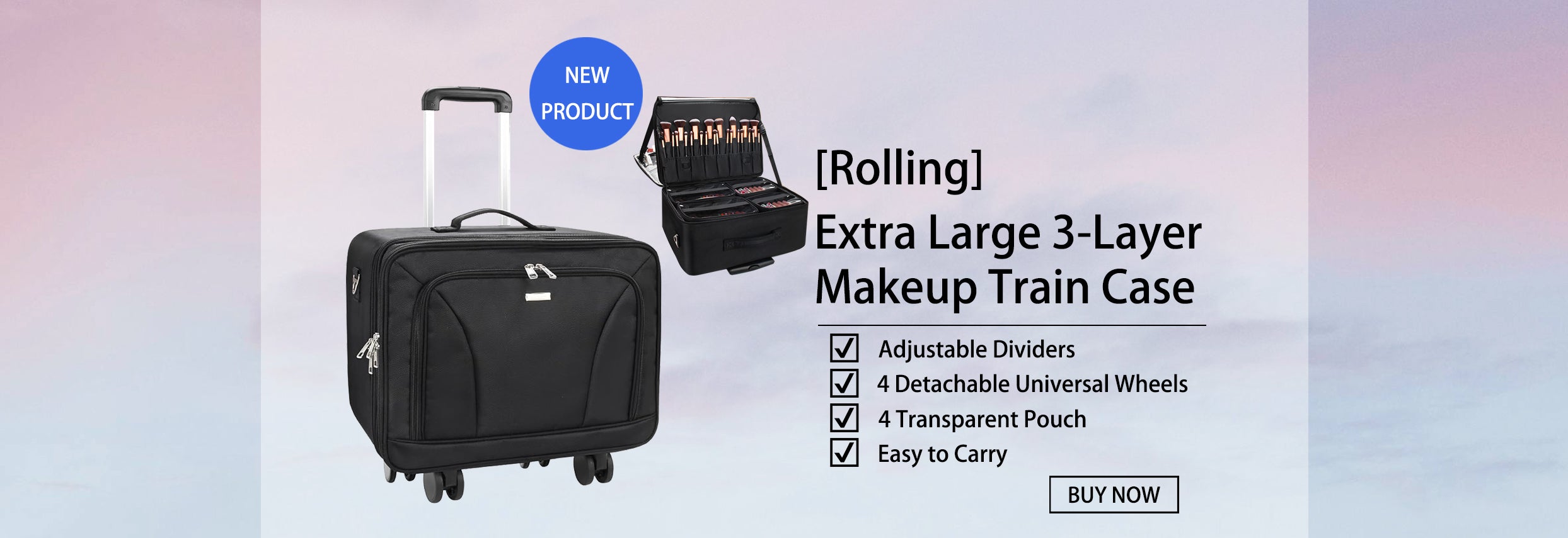 Rolling Makeup Train Case with Detachable Universal Wheels,Professional Trolley Cosmetic Case, 3-Layer Cosmetic Organizer, Extra Large Makeup Travel Bag for Makeup Artist Hairstylist Package Include: 1* Extra Large Makeup Train...
