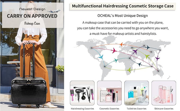 • 20-INCH CARRY-ON LUGGAGE SUITCASE: Unique design making it not only a cosmetic case, but also a trolley suitcase for more things When you need.This professional makeup travel case you can take on a plane, Meet most U.S based & international airline carry-on size requirements and designed to fit into most overhead bins.A great option for professional makeup artists who travels a lot.